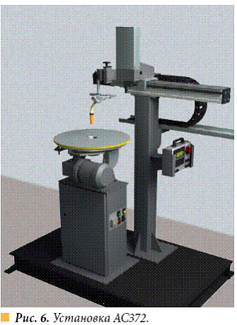 АС370 — для наплавлення циліндричних і конічних поверхонь однієї пальником, а також для комбінованої зварювання кругових і поздовжніх швів ємнісних і корпусних конструкцій (два денця і обичайка, (рис. 4).